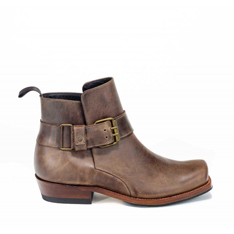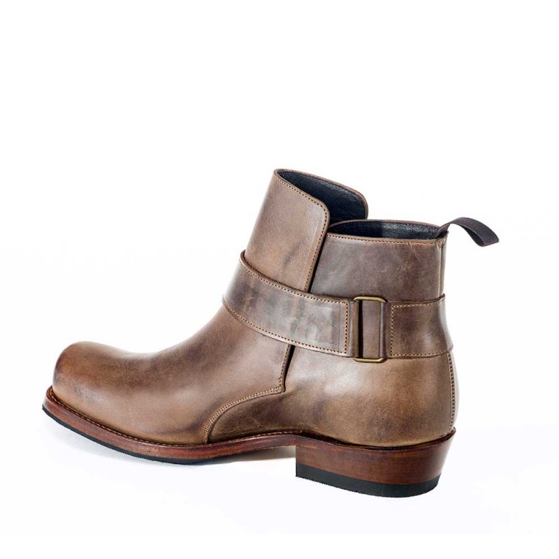 Ankle boots for ladies and gents made from naturally greased cowhide. With a slightly inclined heel and a stylish leather strap with a double pin buckle on the instep. The ankle boot has a wider last shape and is very comfortable to wear. A pull loop on the inside makes it easier to get in and the strong leather sole gives a great grip. The LEGEND from Sancho turns out to be a stylish all-rounder among the biker ankle boots.